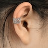 Esta earcuff é feito de latão e revestido com ródio, que lhe dá o acabamento prateado brilhante que podes ver na foto.