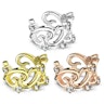 Acabaste de aterrar num earcuff com um coração em filigrana. Na imagem é possível ver os corações entrelaçados e sobrepostos ao longo do exterior da joia, dando-lhe um visual abstrato e artístico. A peça é feita de latão e revestida a ouro 14k, no modelo amarelo, entre outros revestimentos.