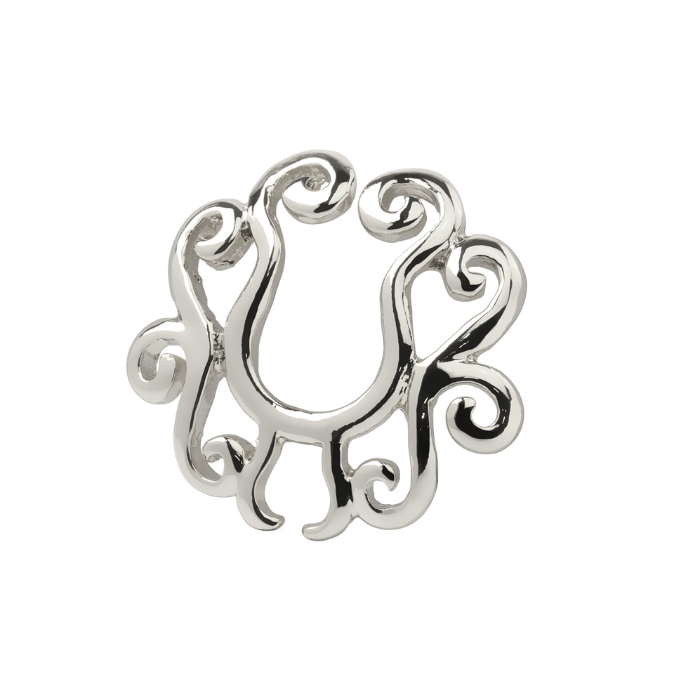 Esta fabulosa joia para o mamilo com desenhos tribais está disponível em duas cores distintas. Uma delas é a cor prateada, e a outra em dourado. Escolha a que mais gostar. Para ajustar apenas necessita colocar no seu mamilo e pressionar ligeiramente. A parte que fica no centro mede cerca de 9 mm, pelo que pode ajustar o quanto necessite.