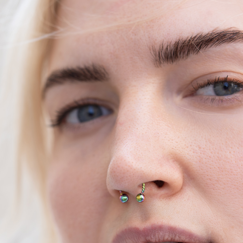 Posição: Tragus, Spiderbite, Snug, Snakebite, Septum, Rook, Mamilo, Labret inferior, Lábios genitais, Helix, Daith, Capuz do clitóris, Anti-tragus, Anti-helix, Angelbite