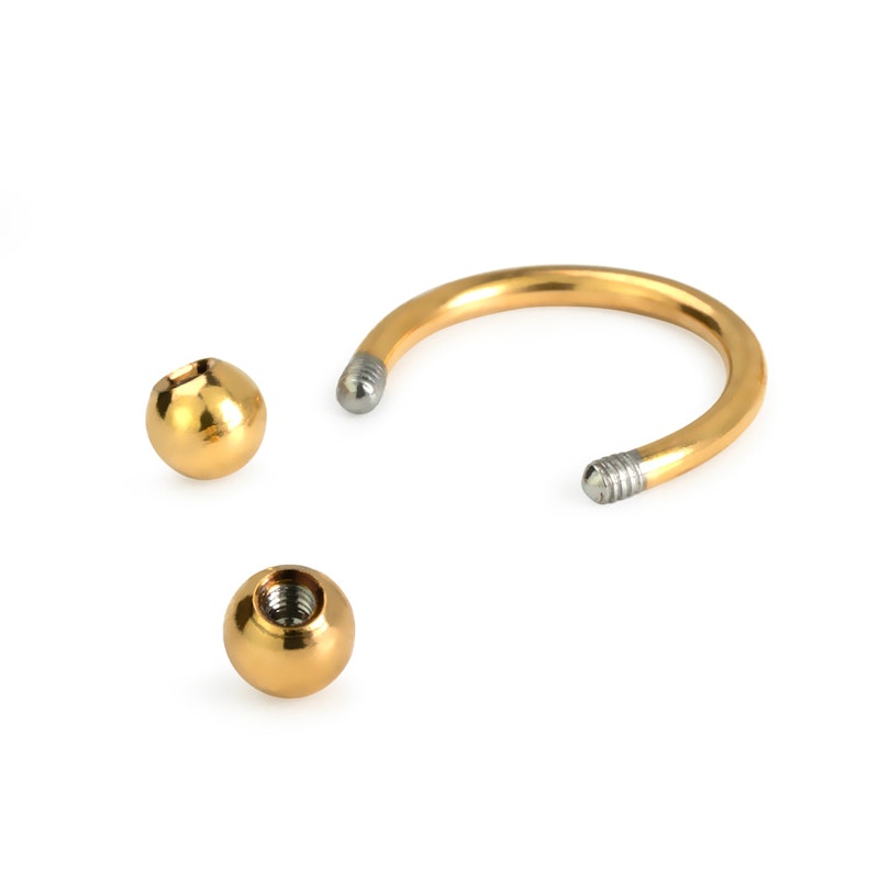 Esta ferradura é feita de puro aço cirúrgico, um excelente material para piercings. O aço cirúrgico não liberta níquel e é aprovado pela legislação da União Europeia para jóias. Os modelos coloridos passaram por um processo de revestimento chamado polarização. As únicas exceções sem revestimento são os modelos ouro e prata.