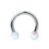 Andas à procura de um barbell para o teu piercing no lábio, no nariz ou na sobrancelha? Espreita esta fantástica ferradura prateada, cujas bolas são opalas. As ferraduras, também conhecida como barbells circulares, também podem ser utilizadas em piercings no mamilo ou na zona íntima. Tens várias opções, por isso, não percas a oportunidade de ter este barbell e de o usar no piercing que quiseres, desde que as medidas se adequem.