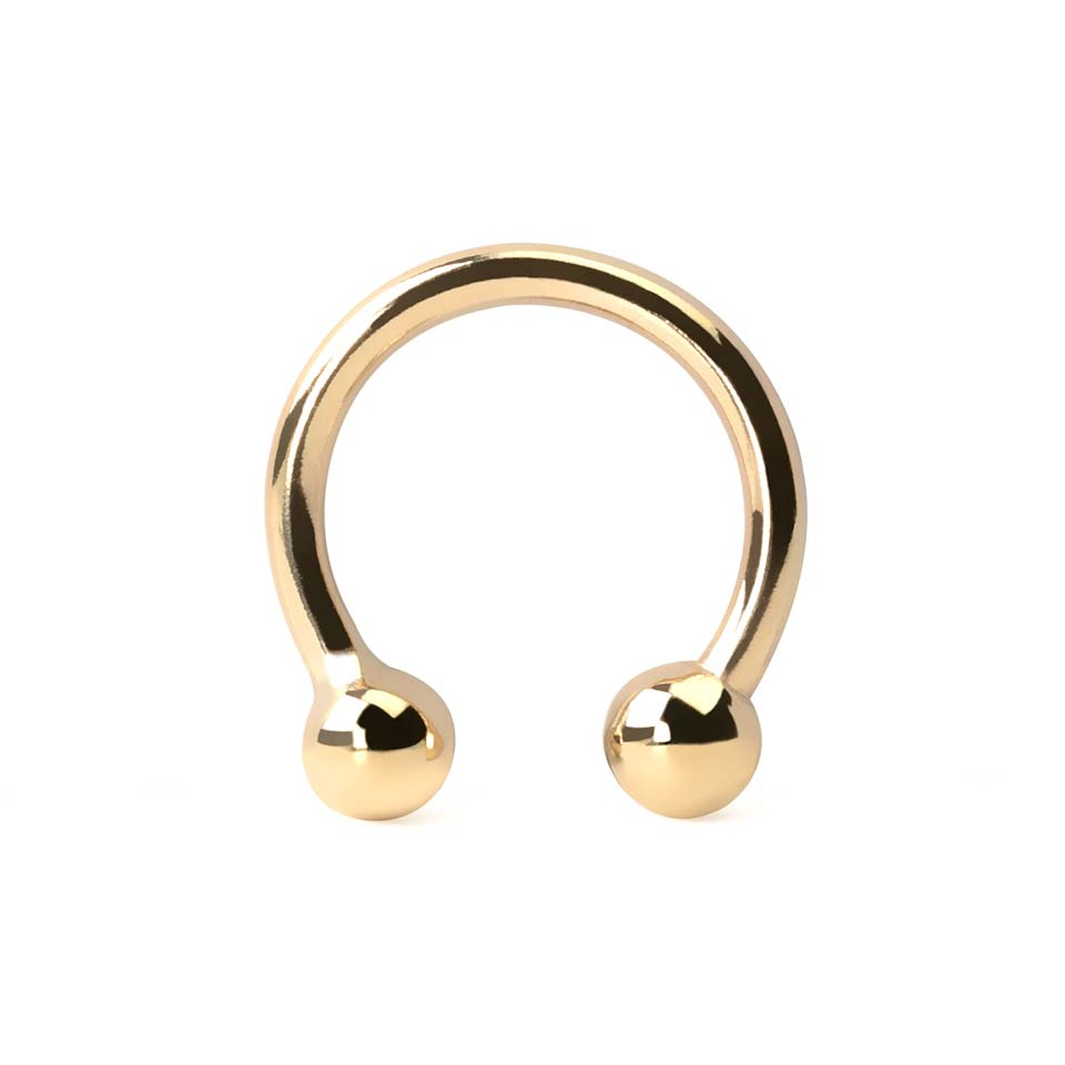 Lindo piercing em formato de ferradura de ouro 14 quilates. A joia tem um design clássico com duas bolas redondas em cada extremidade. Essa é a joia perfeita para você que valoriza qualidade e ao mesmo tempo valoriza simplicidade. A ferradura é uma joia versátil e pode ser usada em quase todos lugares do corpo. Os tipos de piercing onde ferraduras são usadas com mais frequência são septo, mamilo, orelha, sobrancelha, lábios ou piercings íntimos.