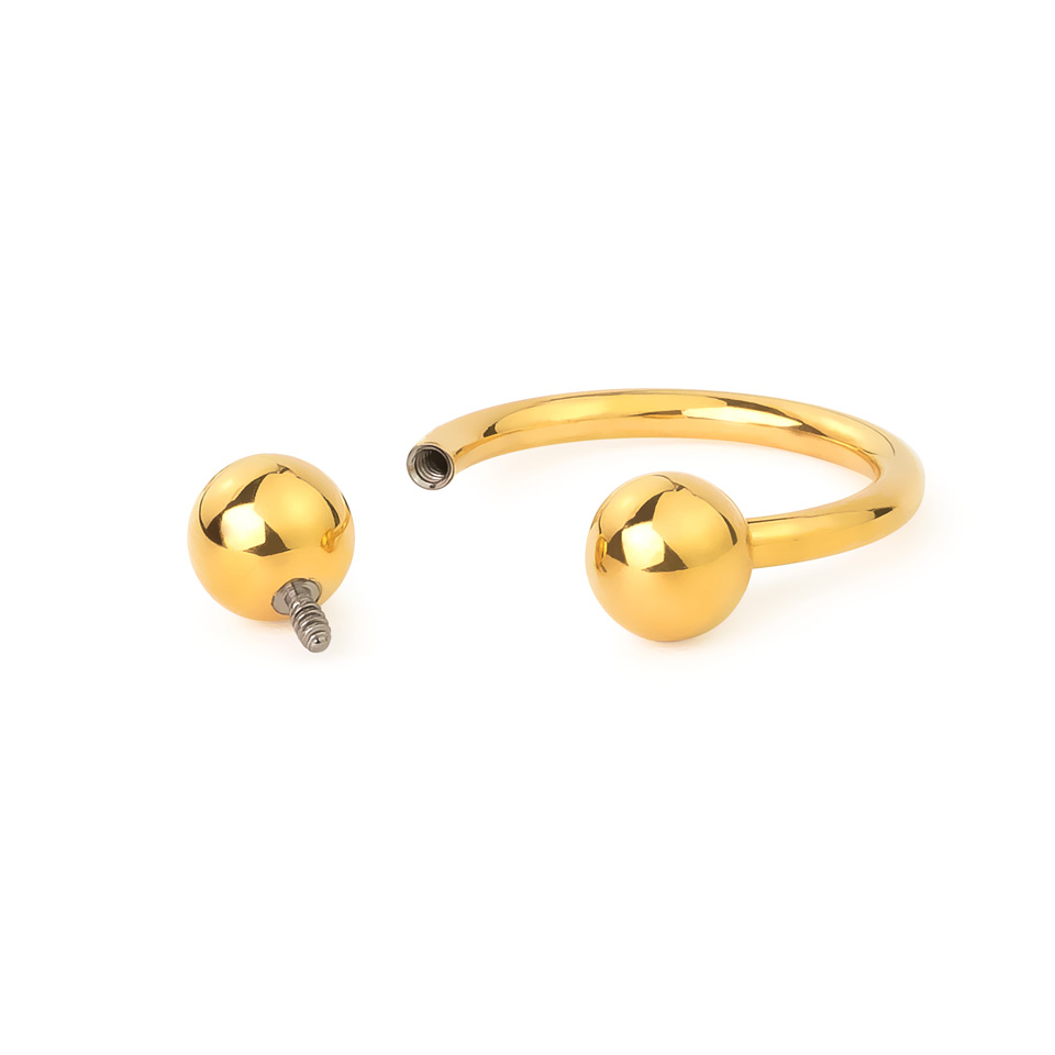 Uma ferradura é uma joia versátil, pois pode ser usada em vários piercings, incluindo, por exemplo, no nariz, lábio, ouvido, mamilo ou sobrancelha. Tudo o que é necessário é que as dimensões das jóias correspondam às dimensões do seu piercing. É claro, também exige que o formato das jóias seja o adequado. Por exemplo, é difícil usar uma ferradura num piercing na língua. A jóia é feita de titânio colorido, ideal para usar pela primeira vez. Não há vestígios de níquel no titânio. Portanto, não precisa de usar o titânio comum "opaco", que é muito escuro comparado ao aço cirúrgico. Agora pode colocar um pouco de cor no seu piercing com esta ferradura colorida. Outra vantagem dessa peça de joelharia é a maneira como o fio é feito na ferradura. A rosca está localizada dentro da própria barra, portanto a bola deve ser aparafusada na barra em vez de aparafusar a bola sobre a haste. Isto diminui muito o risco de rasgar dentro da sua perfuração.