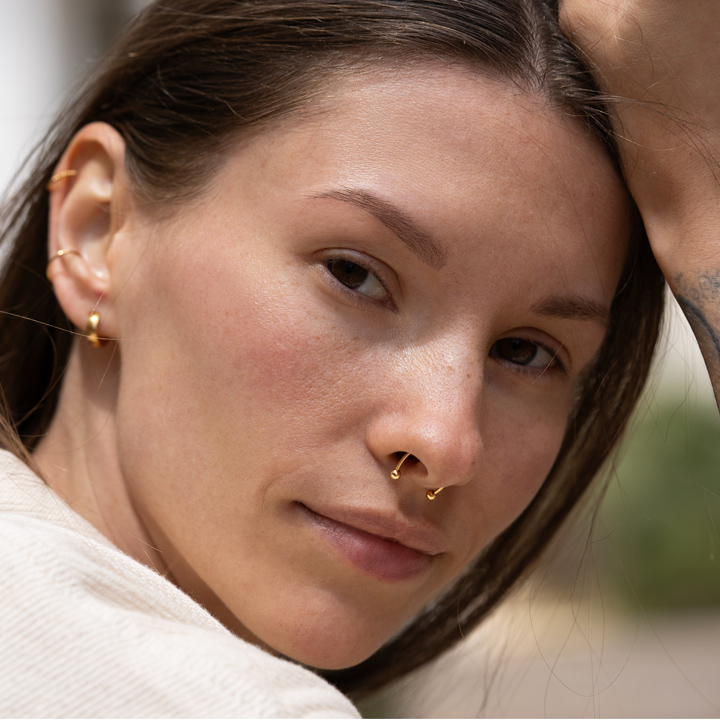 Posição: Tragus, Spiderbite, Snug, Snakebite, Septum, Rook, Labret inferior, Lóbulo, Helix, Daith, Anti-tragus, Anti-helix, Angelbite