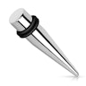 Procura um taper com desenho clássico? Aqui tem um taper de cor metálica em aço cirúrgico com dupla borracha, para fixar no lugar.