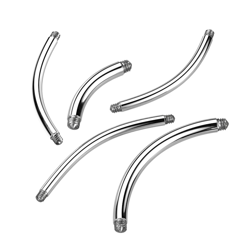Pode usar estas barras curvadas, por exemplo, no piercing da sobrancelha, da orelha ou nos piercings íntimos.
