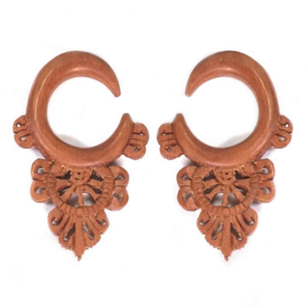 Esta joia ficará pendurada nas suas dilatações, e é feita de madeira de palma de abanico (Sabal Plametto). Este tipo de madeira é de cor castanho escuro com tons vermelhos, e dado que as argolas de madeira não são muito apreciadas; usa-se frequentemente na joelharia de piercings devido à sua cor uniforme.