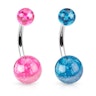 É possível enroscar e desenroscar ambas as bolas do barbell, de modo a que possas trocar de barbell a qualquer altura. Ambas as bolas têm um efeito bonito de mármore. Adquire esta linda joia para o umbigo na cor à tua escolha.