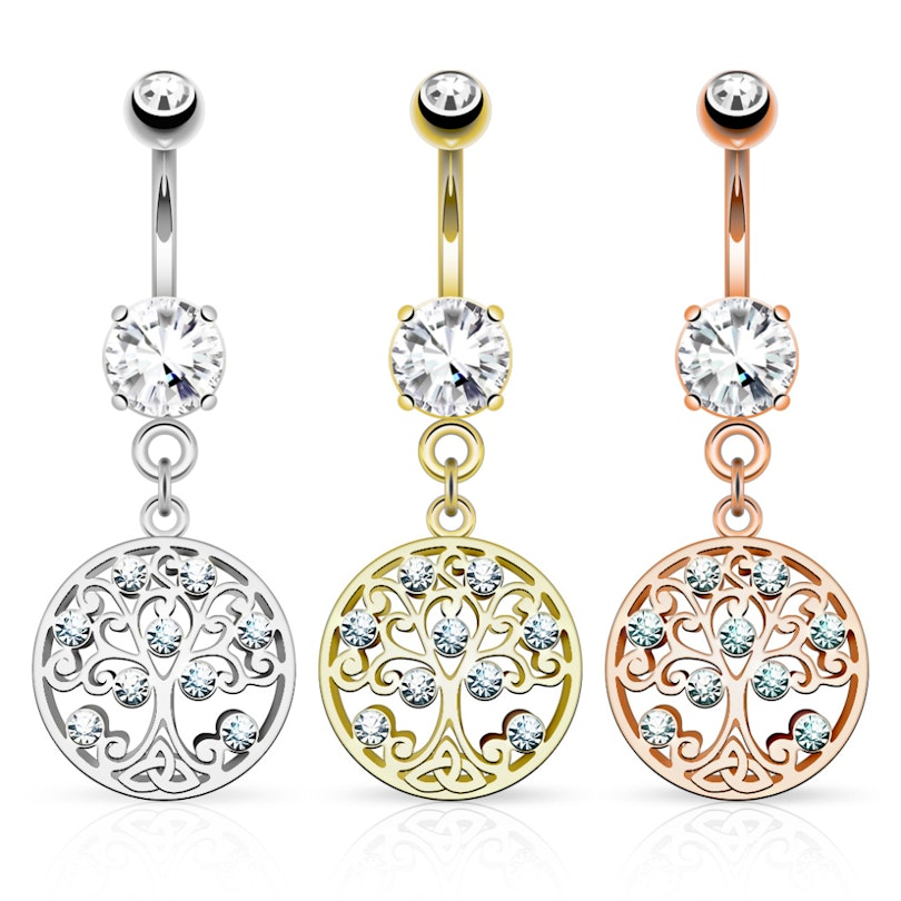 Não percas esta oportunidade de conseguir novas joias cheias de simbolismo e de uma beleza delicadíssima. Esta joia linda para o umbigo contém uma árvore da vida envolta num círculo, perfazendo assim o pendente.