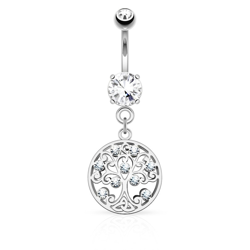 Joia para o umbigo com pedras e pendente da árvore da vida