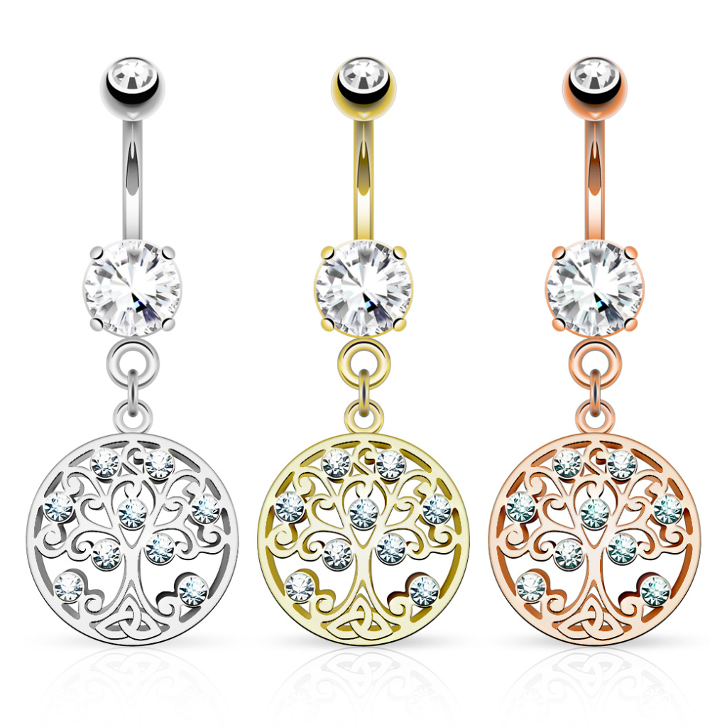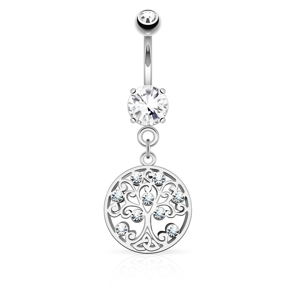 Não percas esta oportunidade de conseguir novas joias cheias de simbolismo e de uma beleza delicadíssima. Esta joia linda para o umbigo contém uma árvore da vida envolta num círculo, perfazendo assim o pendente.