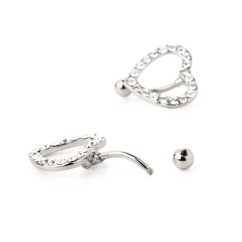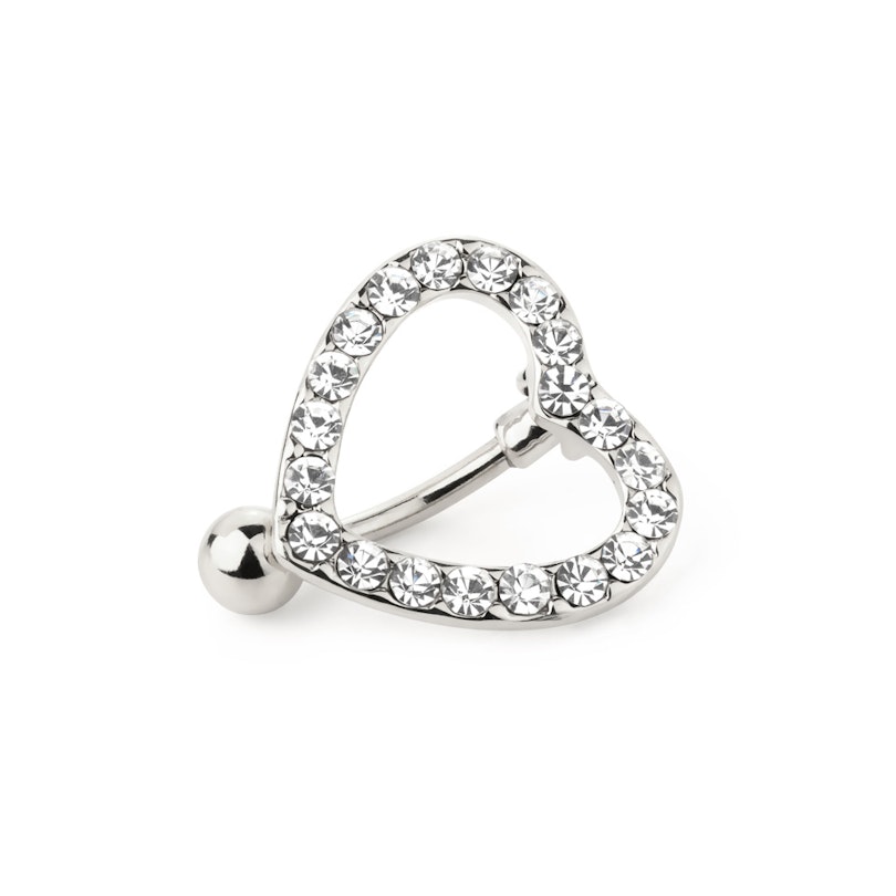 Este barbell é feito de aço cirúrgico. A borda espessa do coração tem várias pedras incrustadas, que estão presas por várias garras.