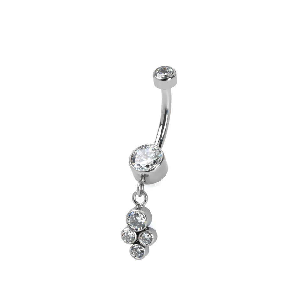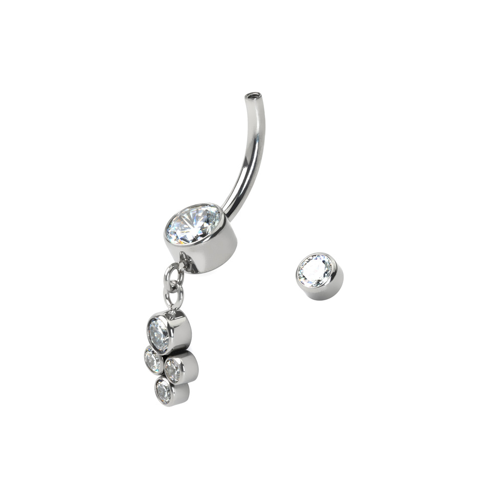 Joia para o umbigo de titânio com conjunto de pedras brilhantes pendentes