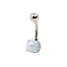Esta joia em aço cirúrgico para o umbigo contém uma opala branca fixa com garras. A joia contém rosca externa, por isso, basta desapertar a bola no topo para a colocares no teu piercing. Está disponível em dourado ou prateado e vai dar vida ao teu umbigo.