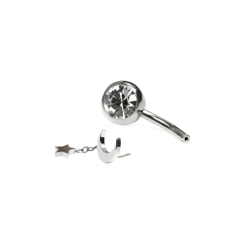 Nome: Joia para o umbigo em titânio com lua e estrela flutuantes