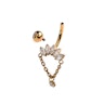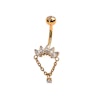Esta joia para o umbigo em titânio com pedras marquesa e corrente não é só mais um barbell em titânio. É toda uma joia com personalidade. As pedras em corte marquesa assentam como se fossem uma coroa, enquanto a corrente dá aquele toque de necessário de drama (porque o teu piercing também merece destaque).