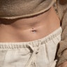 Joia para o umbigo com pedra grande e topo fofinho em flor