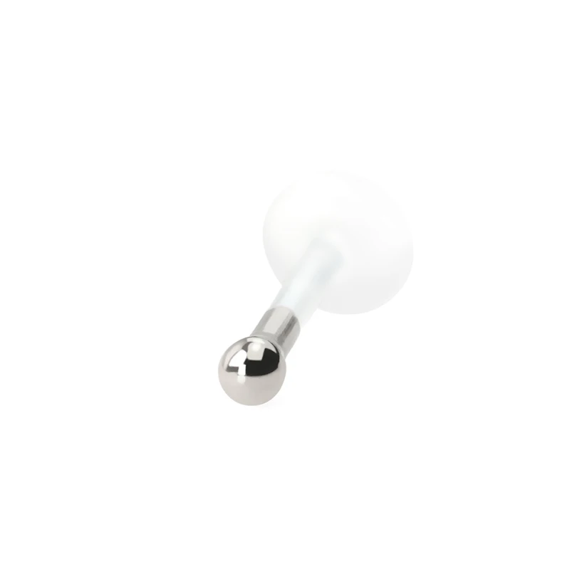 Labret com barra de bioplástico e bola de ouro maciço 14 quilates-Ouro branco 14K / PTFE