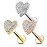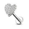 Labret com coração cravejado e rosca interior