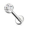 Este labret é feito de aço cirúrgico 316L e tem uma bola de cristal com forma de pérola na parte superior.