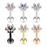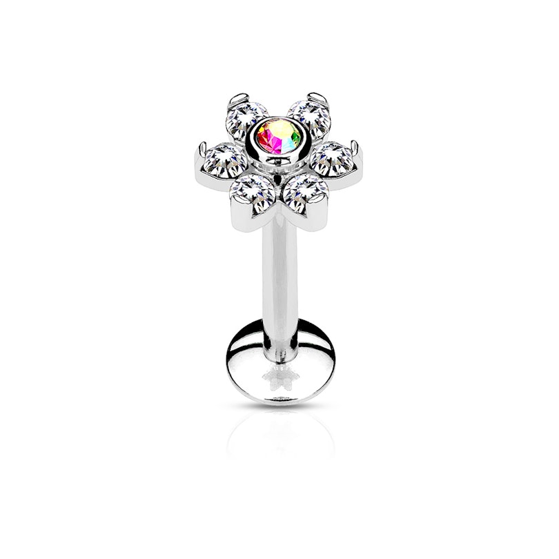 A barra do labret está disponível em várias cores; a versão em prateado tem várias opções de cor para o topo. Portanto, tens várias opções de escolha para a barra e para a pedra, mas os tamanhos e o número de pedras são sempre os mesmos.