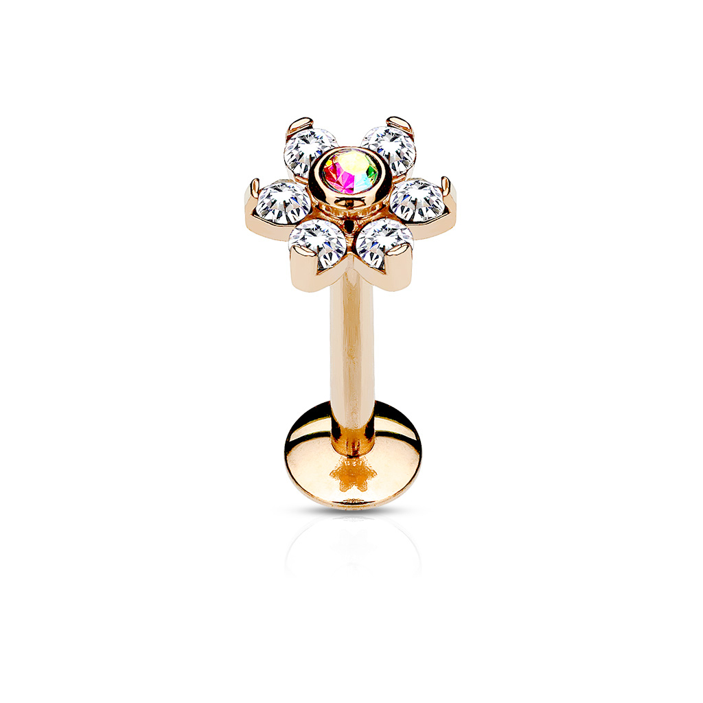 Labret com rosca interna e flor-Ouro rosa-Aurora boreal
