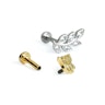 Este labret super chique com folhas é composto por uma rosca interna. Os labrets com rosca interna, enroscam por dentro da barra, sendo que a parte decorativa tem um pino que enrosca no labret. A barra que entra no piercing é feita de aço cirúrgico e o topo com folhas é de latão. A joia tem um revestimento e podes escolhê-la em prateado, dourado ou ouro vermelho.