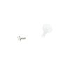 A barra do labret é feita em PTFE, e a estrela serve como mecanismo de fecho.