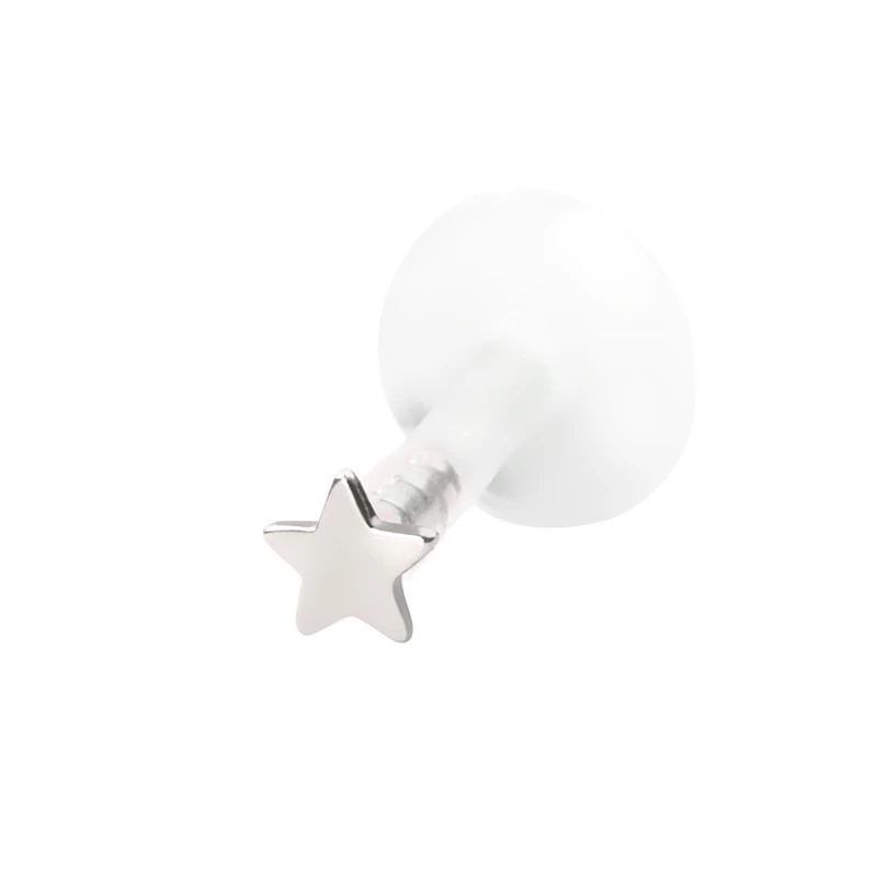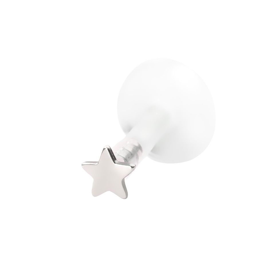 Nome: Labret com topo de estrela em ouro de 14 quilates-Ouro branco 14K / PTFE