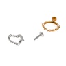 Este labret contém uma barra curva que se encaixa discretamente na orelha, se optares por o usar no teu piercing no helix. Também ficará incrível no lóbulo. Contém ainda uma corrente delicada que está presa em ambas as pontas e que fica pendurada.