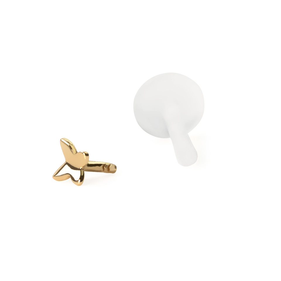 Labret de borboleta de ouro 14 quilates com barra de ptfe