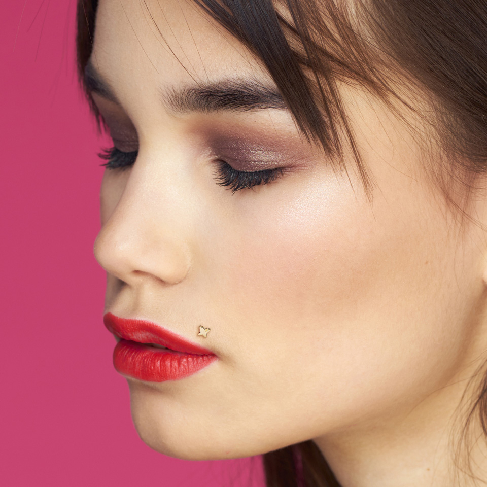 Nome: Labret de borboleta de ouro 14 quilates com barra de ptfe