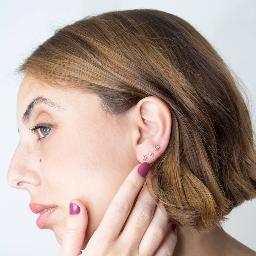 Posição: Tragus, Narina, Lóbulo, Helix, Conch, Anti-helix
