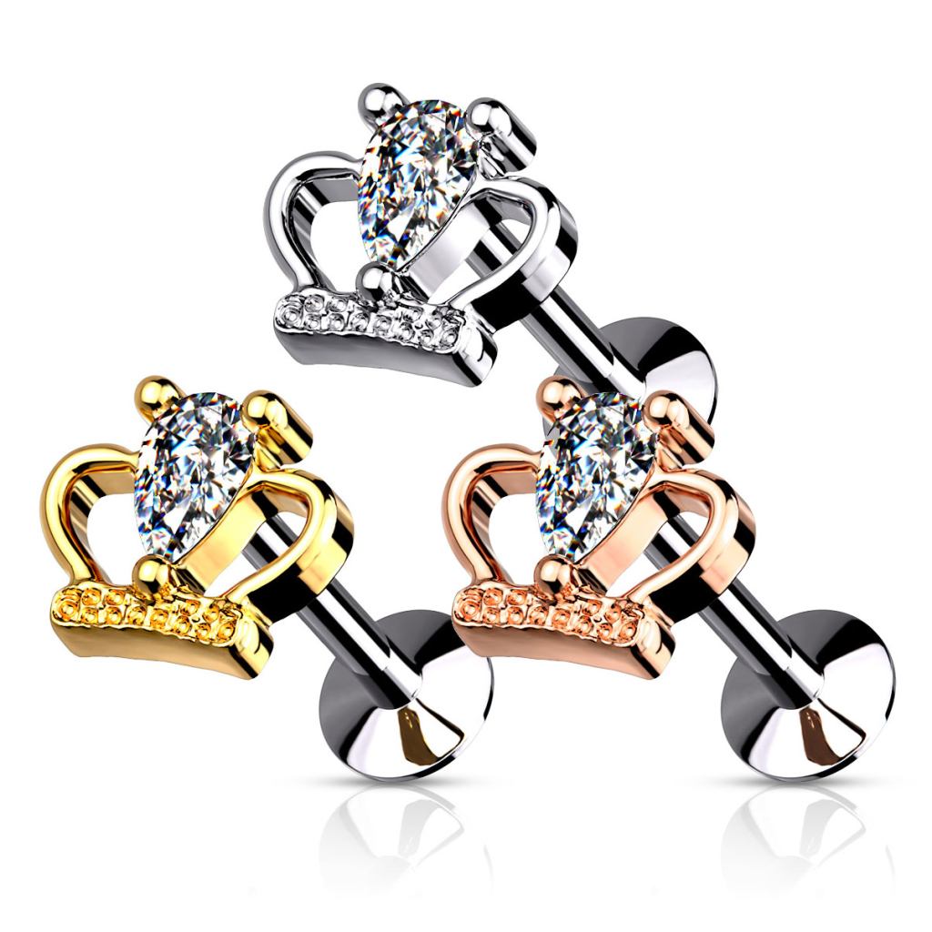 Labret de encaixe com coroa e pedra
