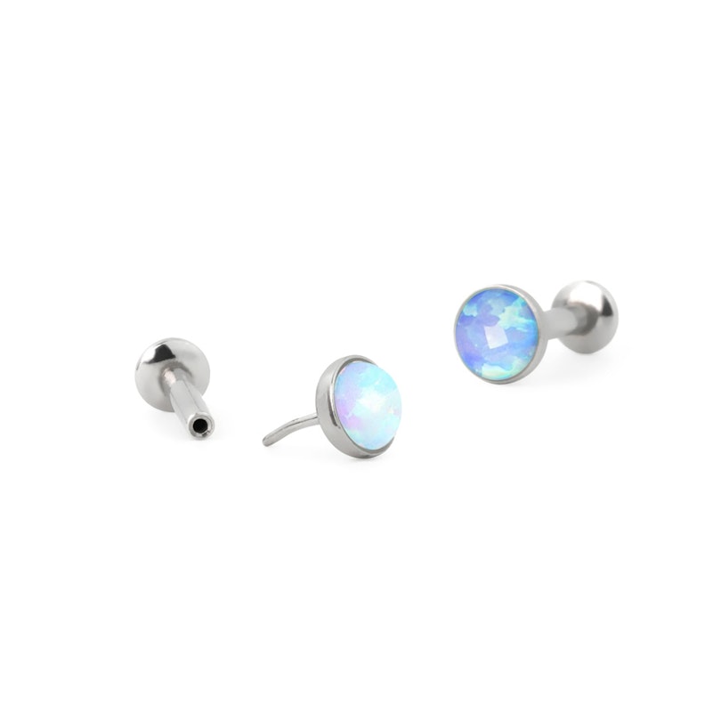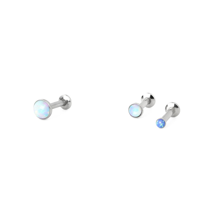 O labret está disponível em vários comprimentos e em duas opções de cor para a pedra, como é possível ver na figura. Ao escolher o comprimento e a cor da pedra, deves ainda escolher, o tamanho da pedra da bola de entre três opções.