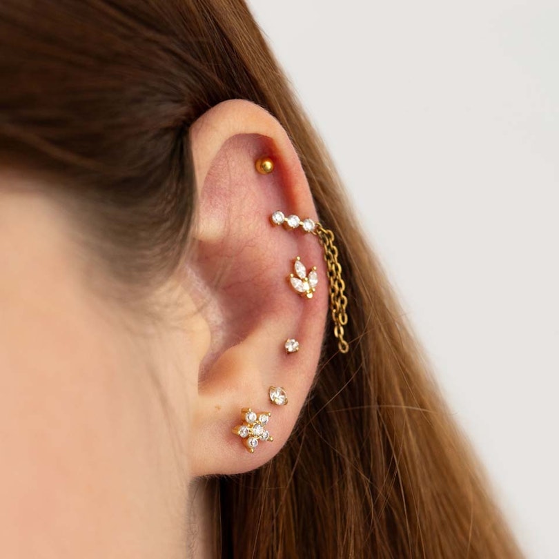 Posição: Tragus, Spiderbite, Snakebite, Medusa, Madonna, Labret inferior, Lóbulo, Helix, Conch, Anti-helix, Angelbite