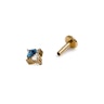 Este labret de titânio em forma de diamante com pedra azul é um grande encontro entre geometria e atitude. Esta estrutura em forma de diamante alberga uma impressionante pedra azul, que está segura com garras. Está disponível em dourado e prateado e foi concebida para se destacar sem precisar de outras joias.