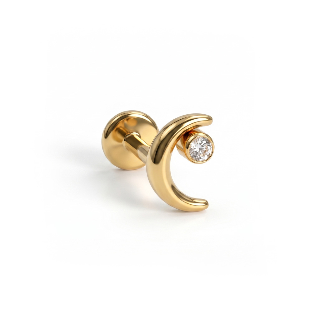 Labret de titânio em forma de lua com estrela