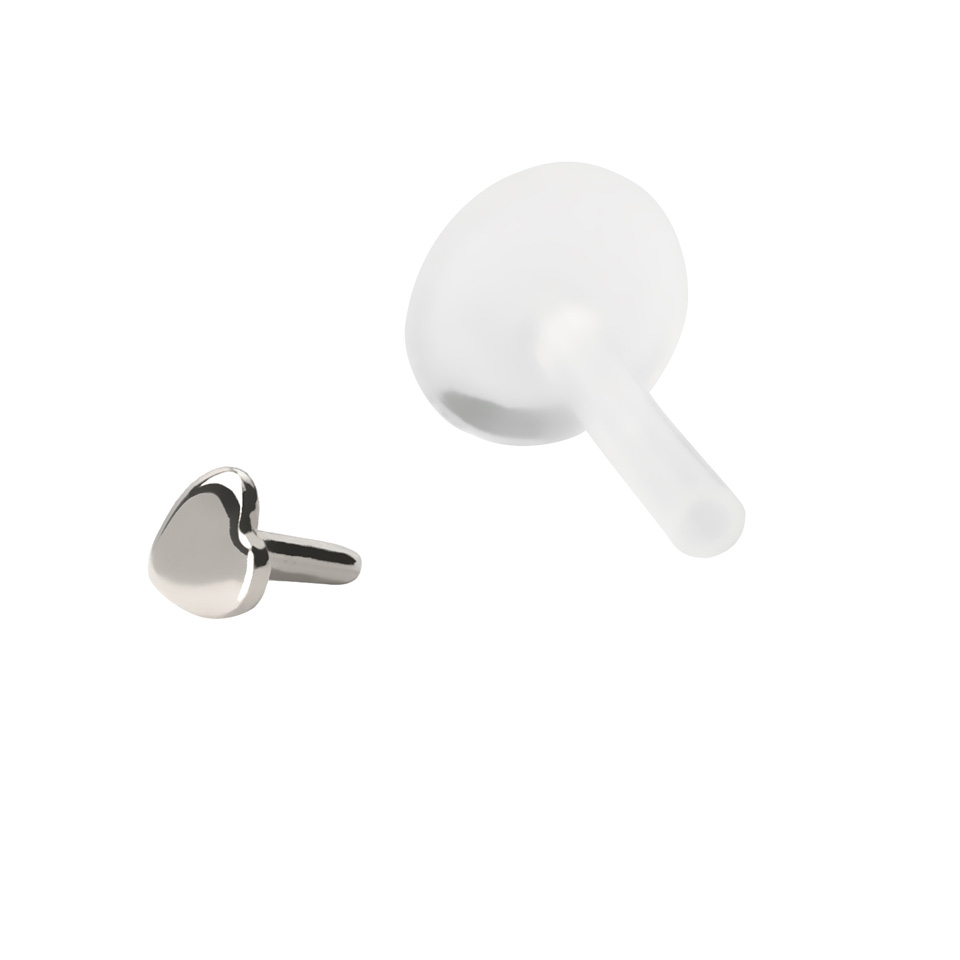 Com esta joia obterá um doce e pequeno coração para a perfuração dos seus lábios, por exemplo. Este coração é feito em ouro de 14 quilates, pelo que aumenta a sua exclusividade e qualidade. O coração tem um pequeno parafuso na sua parte inferior, que se enrosca no labret de PTFE. Por isso, o coração funciona também como mecanismo de fecho.