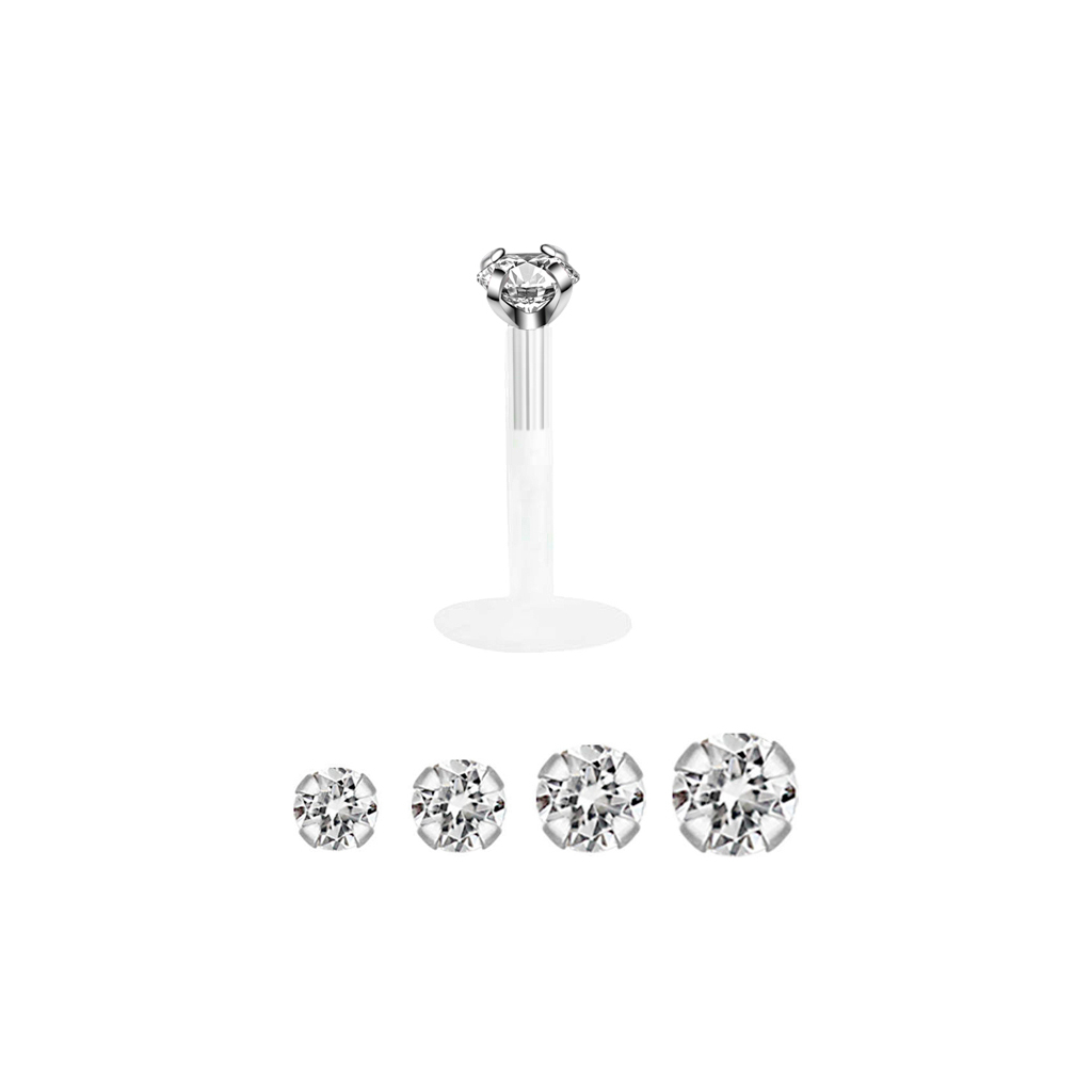 Labret em ouro de 14 quilates com brilhante redondo e barra ptfe
