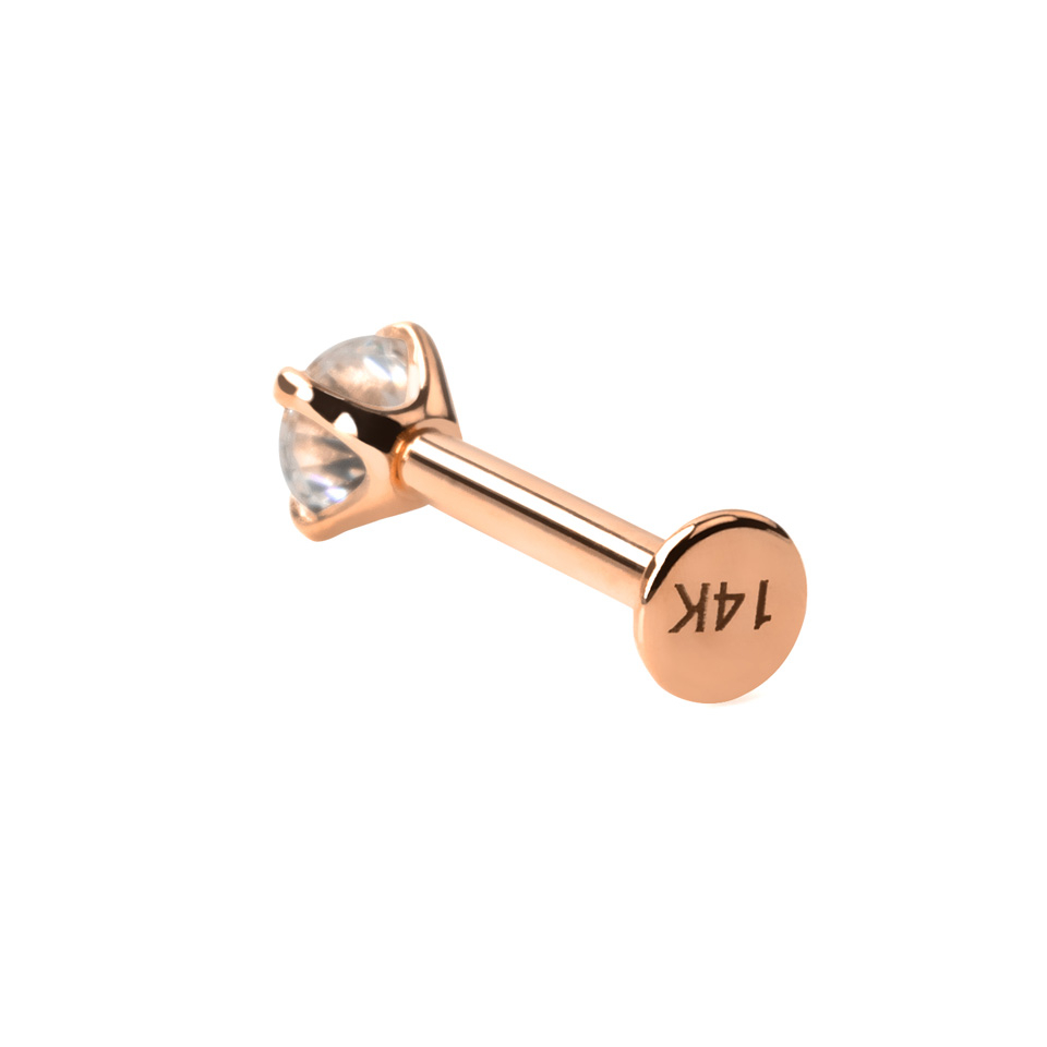 Nome: Labret em ouro de 14 quilates com rosca interior e brilhante
