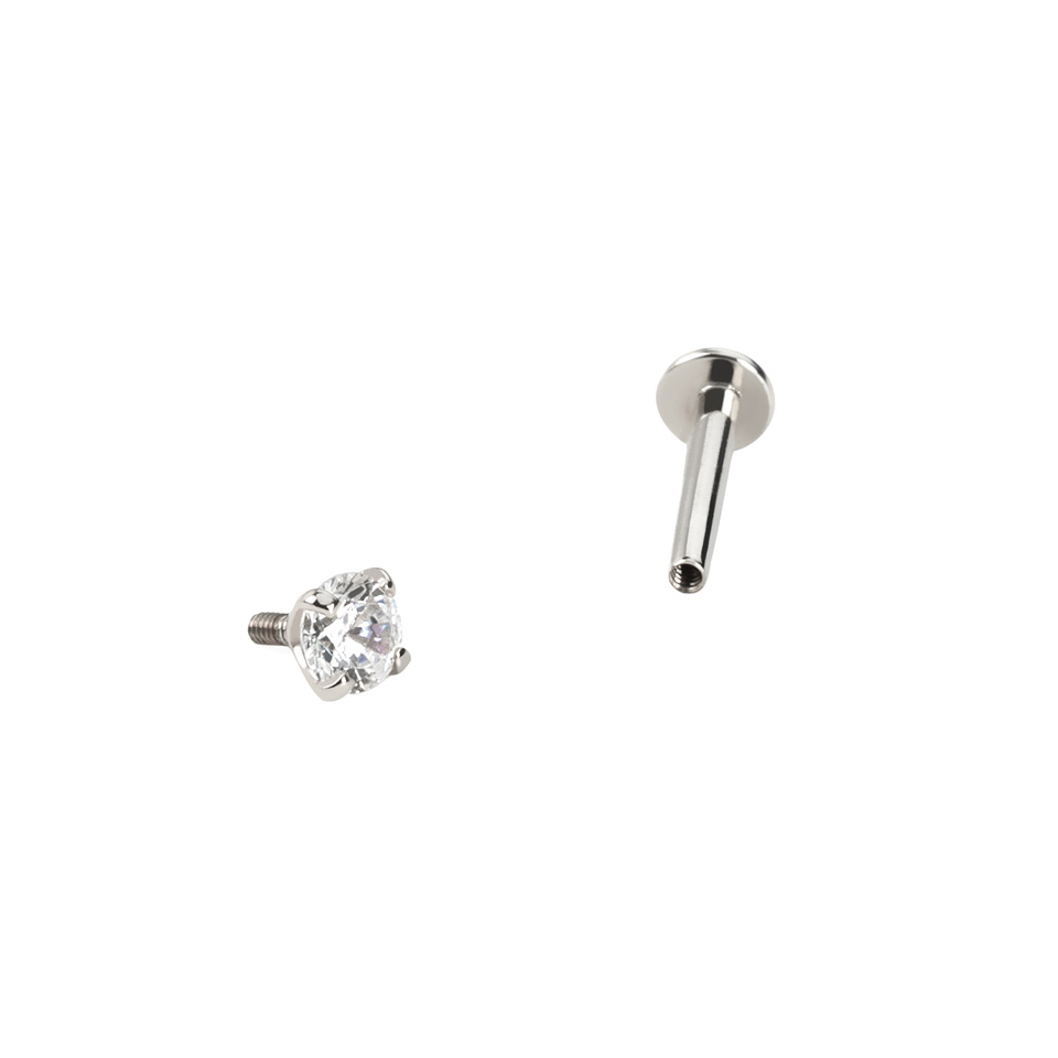 O labret está equipado com uma rosca interna extra longa. Isto significa que a pedra deve ser bem aparafusada antes de ser fixa, o que é uma grande vantagem, já que não há de a perder.