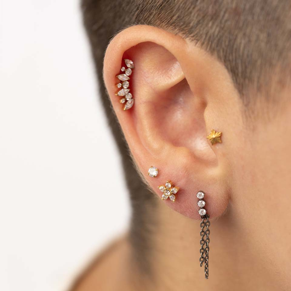Posição: Tragus, Lóbulo, Helix
