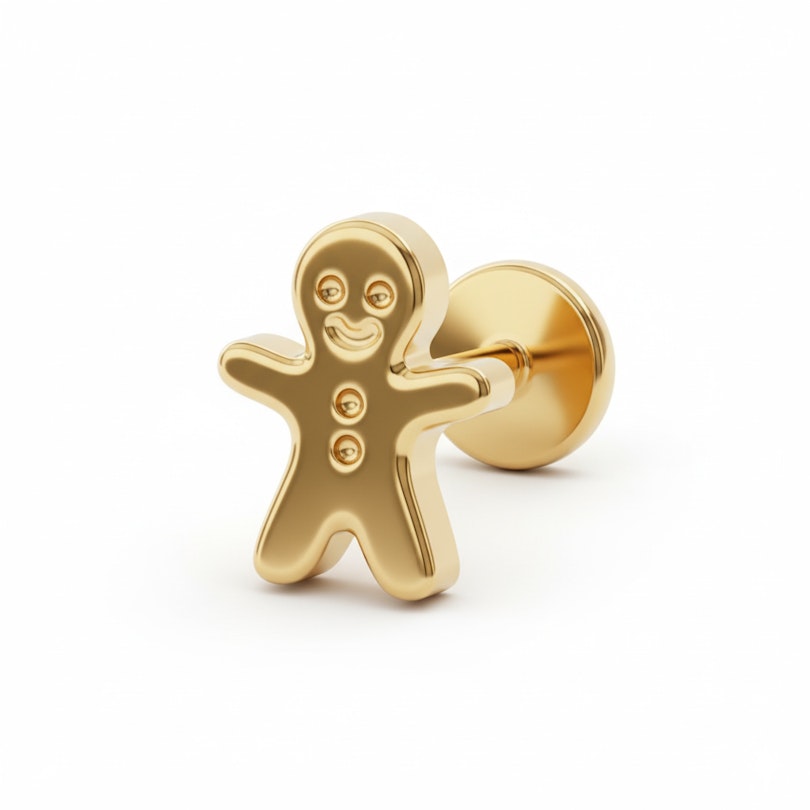 Este labret em titânio com boneco de gengibre é um aceno divertido à nostalgia. Tem a forma do famoso boneco de gengibre e dá um toque de diversão ao teu conjunto da orelha sem levar tudo demasiado a sério.