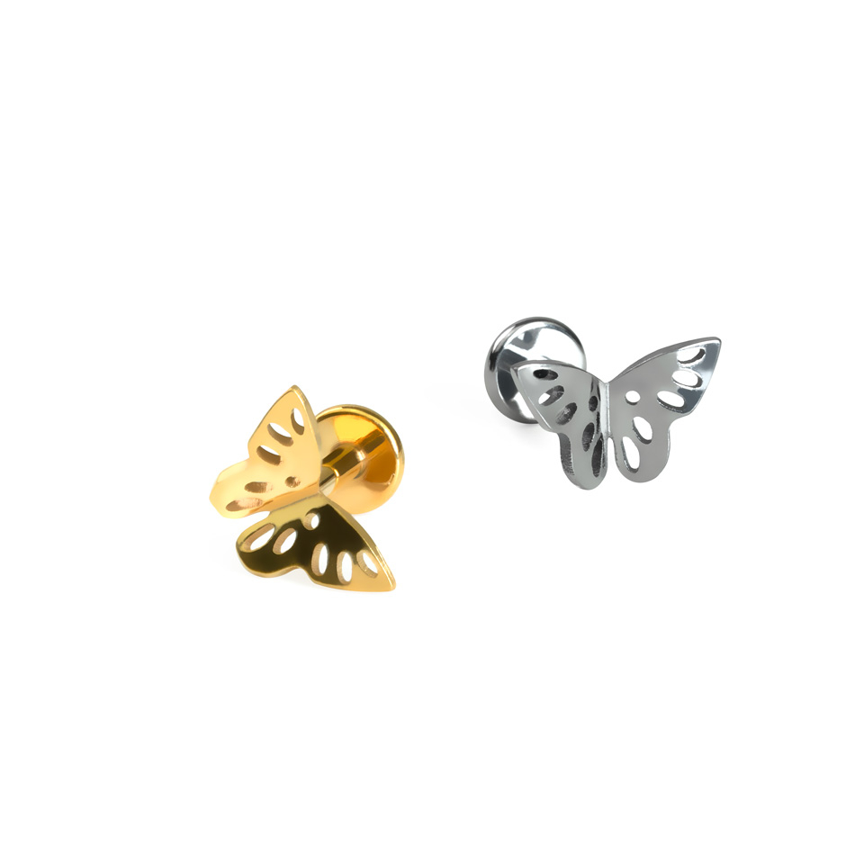 Este lindo labret contém uma borboleta presa que está mesmo pronta para levantar voo.