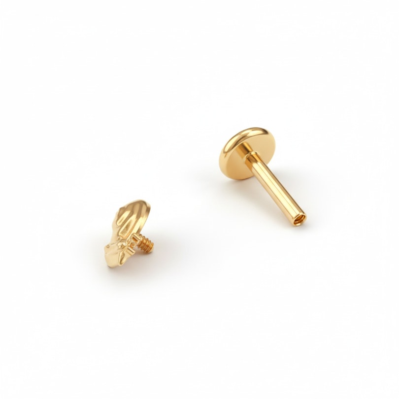 É feito em titânio, por isso, é hipoalergénico, à prova de água e durável o suficiente para utilização diária. A rosca interna garante uma colocação suave e um encaixe seguro, e assegura que a joia não sai do sítio. Desenhado para piercings no conch, no helix, no lóbulo ou no tragus, com base plana que se mantém confortável ao longo de todo o dia.