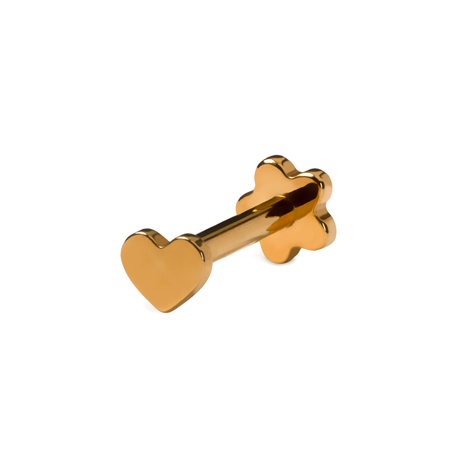 Labret em titânio com dois topos: flor e coração