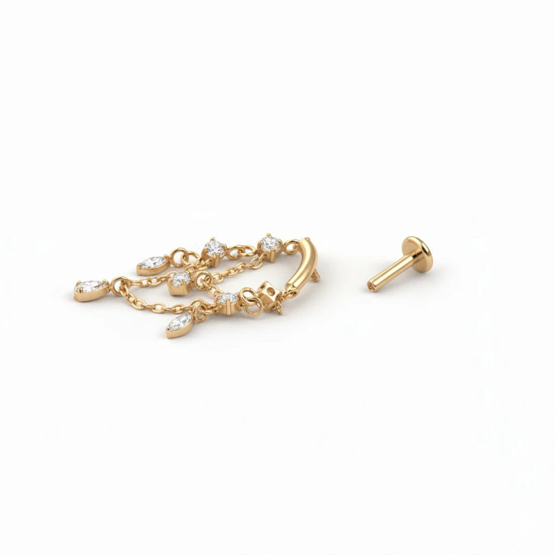 Nome: Labret em titânio com pendentes tipo candieiro