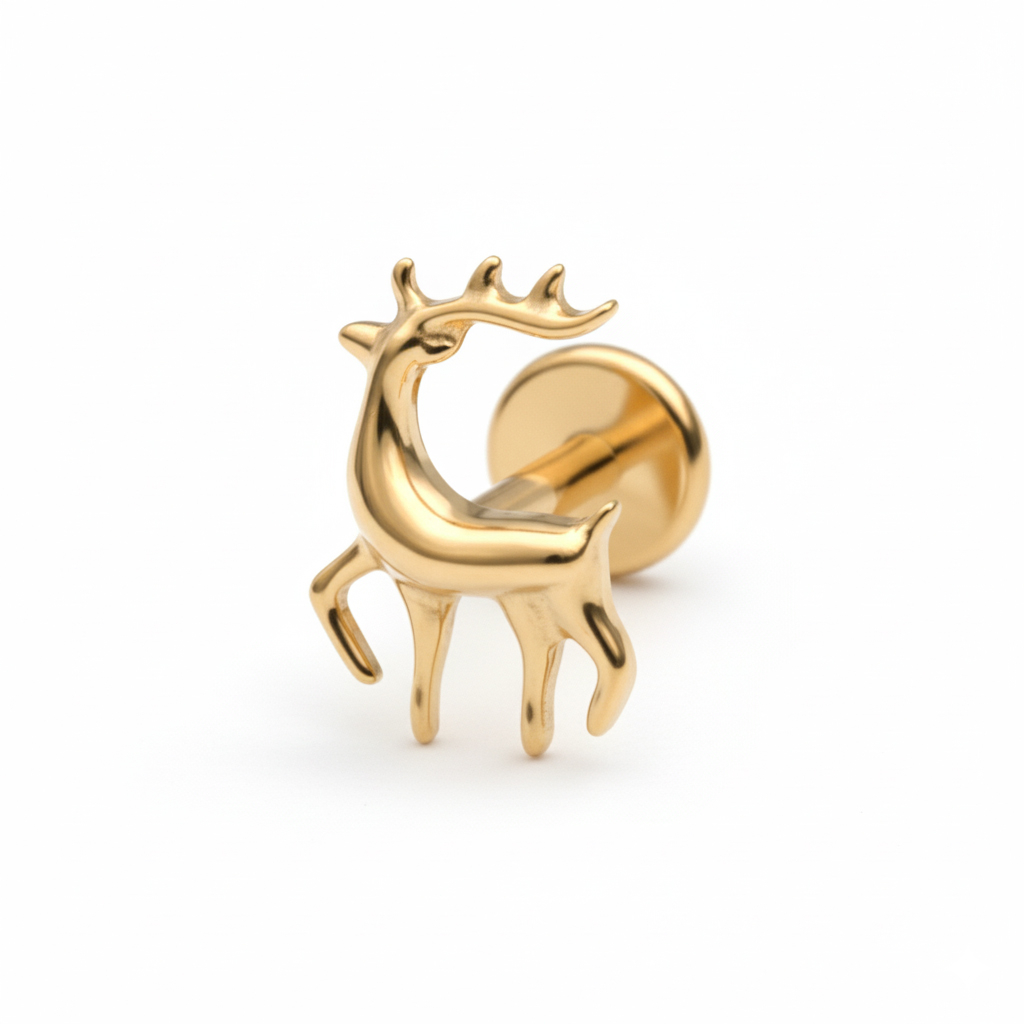 Este labret em titânio com rena vem trazer o espírito das festividades ao teu conjunto da orelha. O seu design assemelha-se ao de uma rena a trote para recordar as luzes nostálgicas, as noites sossegadas e aquela alegria fácil de fim de ano que nunca fica fora de moda.